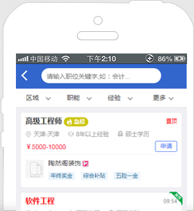 海量工作機(jī)會等著您,同一時(shí)刻您將面對數(shù)以十萬的工作機(jī)會;幫助您記憶最近搜索條件,簡化您的搜索操作。